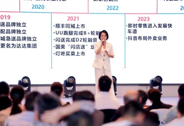随后,典礼进入备受期待的战略发布环节。总经理宋真女士登台,正式发布《十年征程,启新未来》战略规划。她明确指出,公司的未来增长将来自从“配送”到“近场电商综合服务商”的生态跃迁,并强调必须依靠“业务增长与组织能力双轮驱动”,通过构建现代化管理体系、客观全面的评价体系、可持续发展组织与技术驱动,实现持续增长。她号召全体中联人以结果导向、经营思维、用户视角和破圈心态,步调一致,共同实现新十年的战略目标。